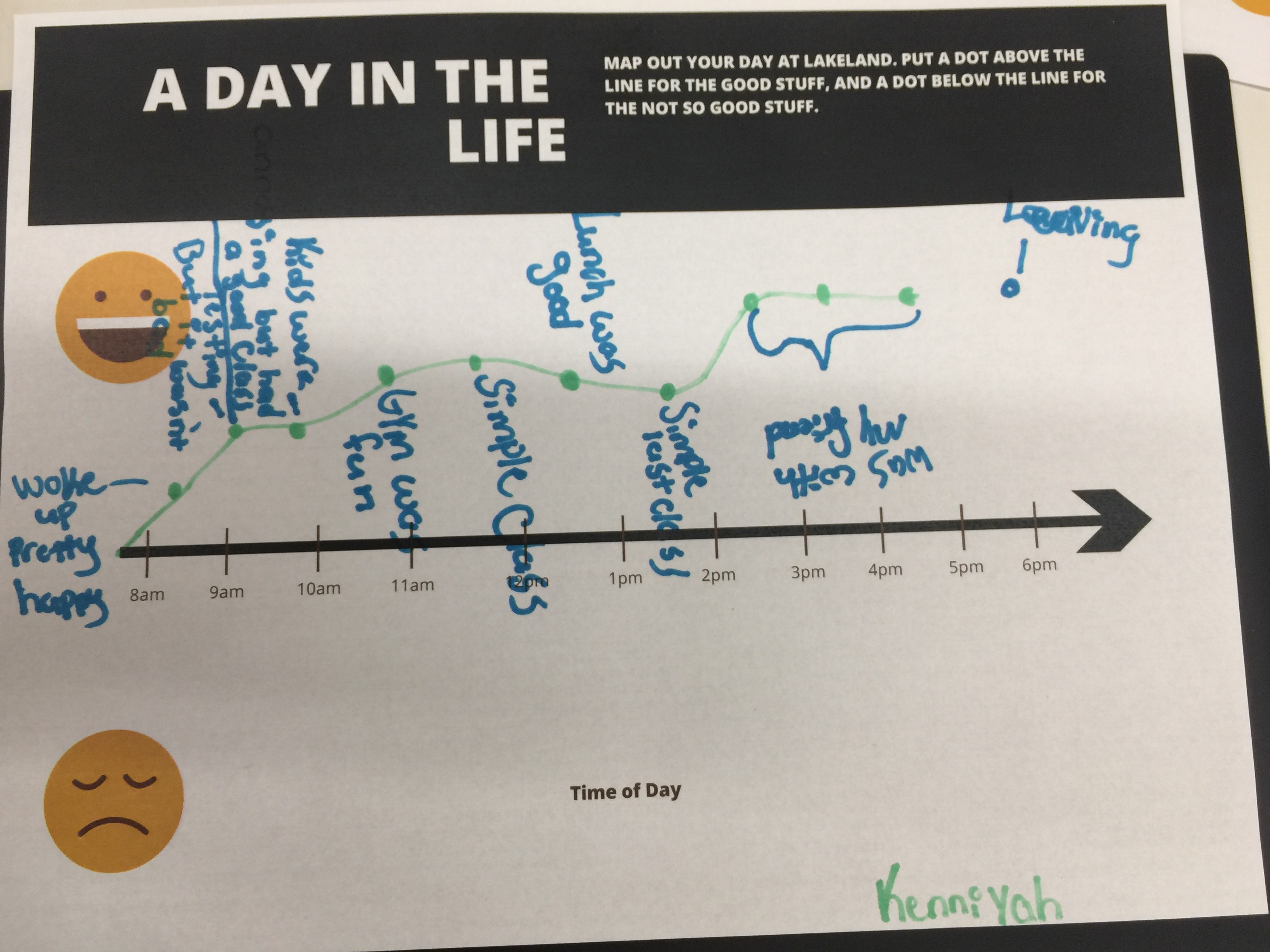And then in the rest of our very first workshop, the students were guided to reflect their day by “My School Day” work sheet that also led us one step forward to the FEEL stage of DFC framework.