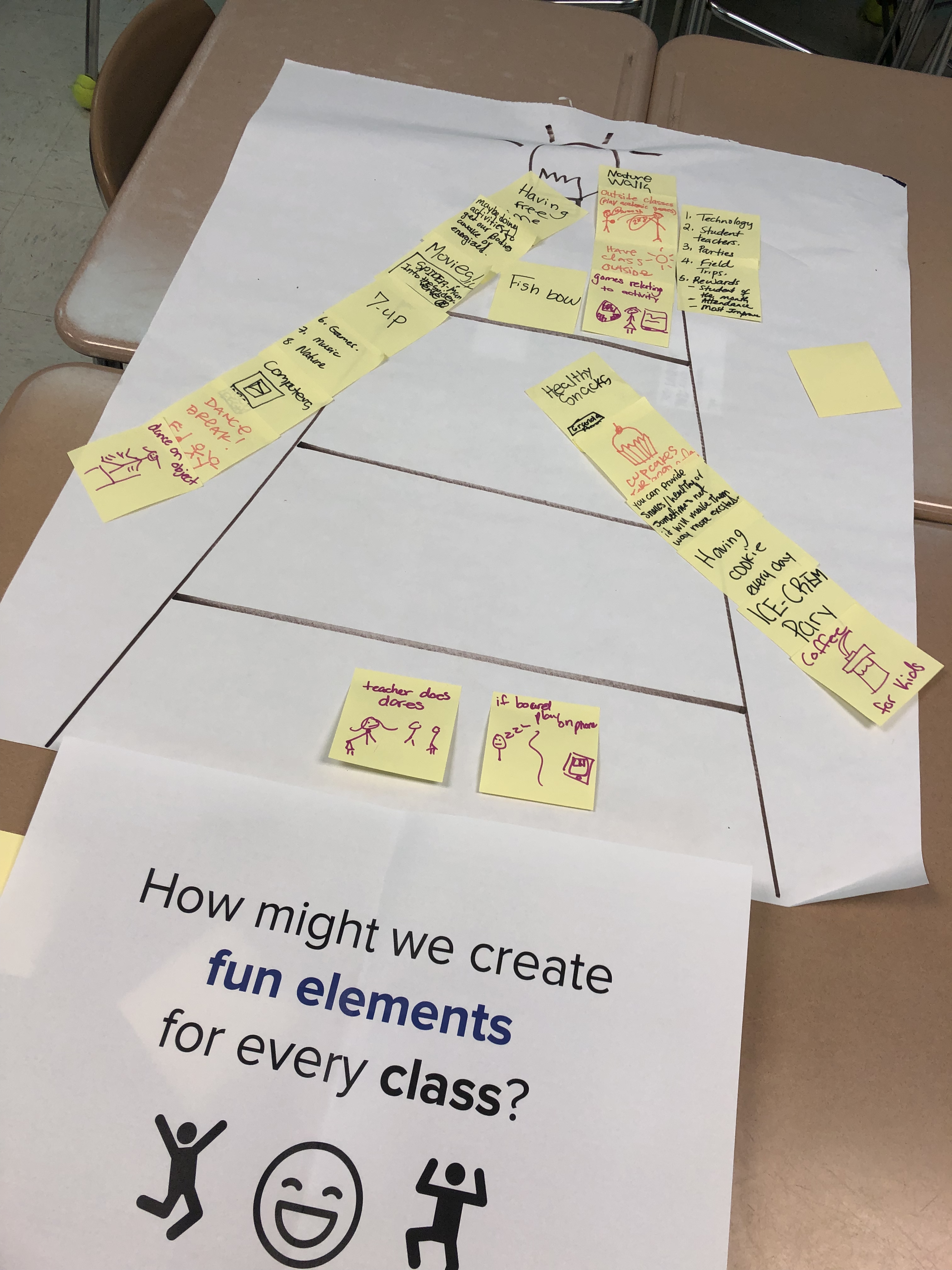 On April 11th, the IMAGINE workshop, we set up 5 stations with 5 different HMW prompts. We had the students visit different stations in turn and brainstorm as much ideas as possible.