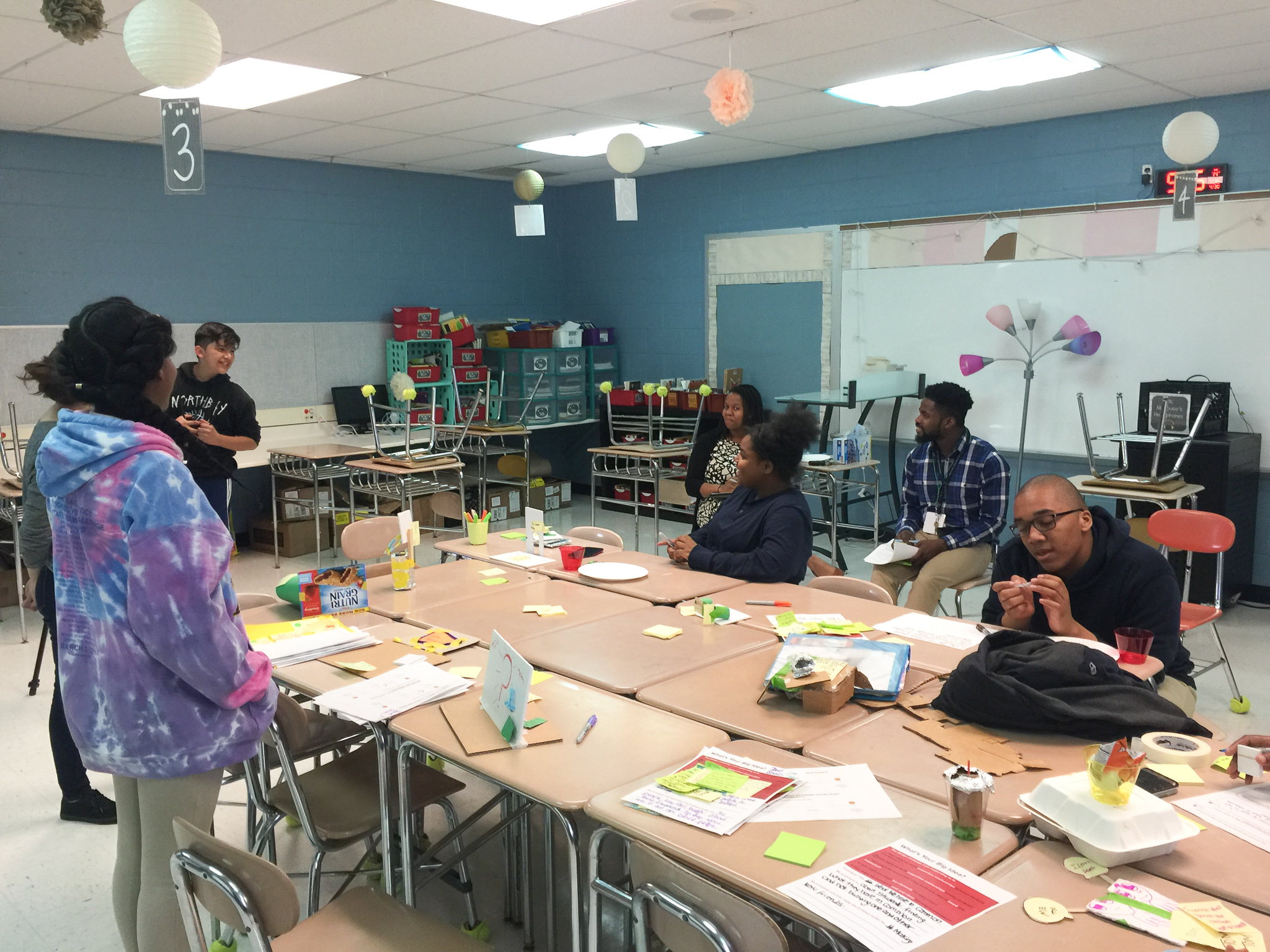 Finally, a few teachers arrived, and the students were prepared. Each student spent a few minutes presenting, which was followed by their peers and audience offering feedback through saying what they liked about the idea, as well as what they thought could be added or altered to make their prototypes even more effective.
